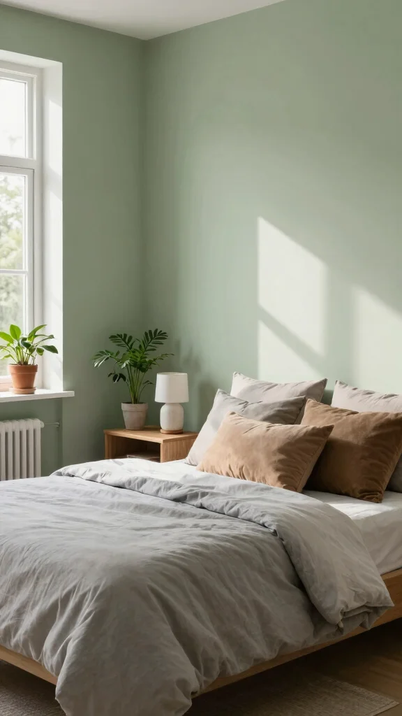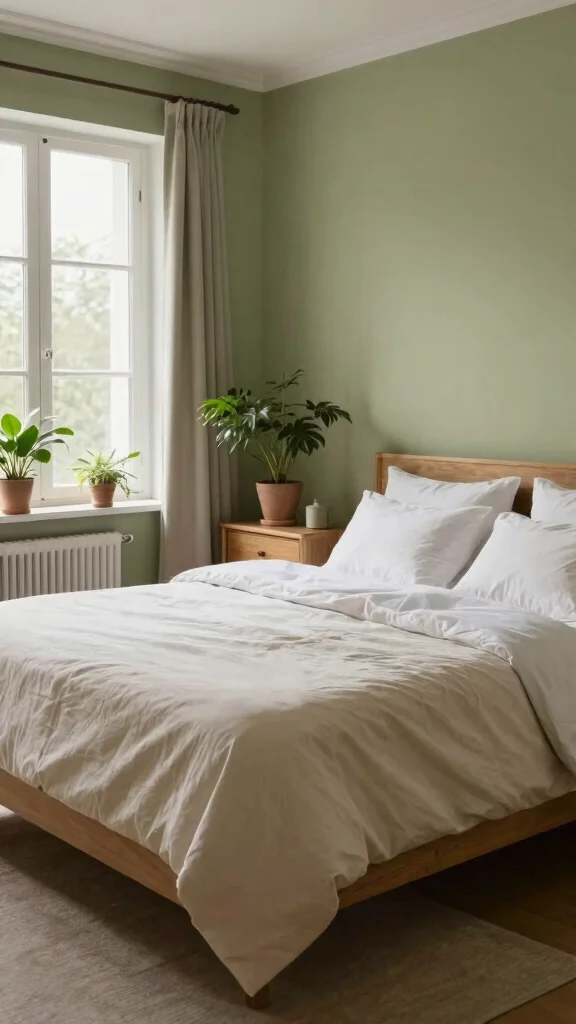 Opt for low-VOC paints to ensure your bedroom is an eco-friendly sanctuary. Light olive green enhances the overall ambiance, promoting a tranquil environment.