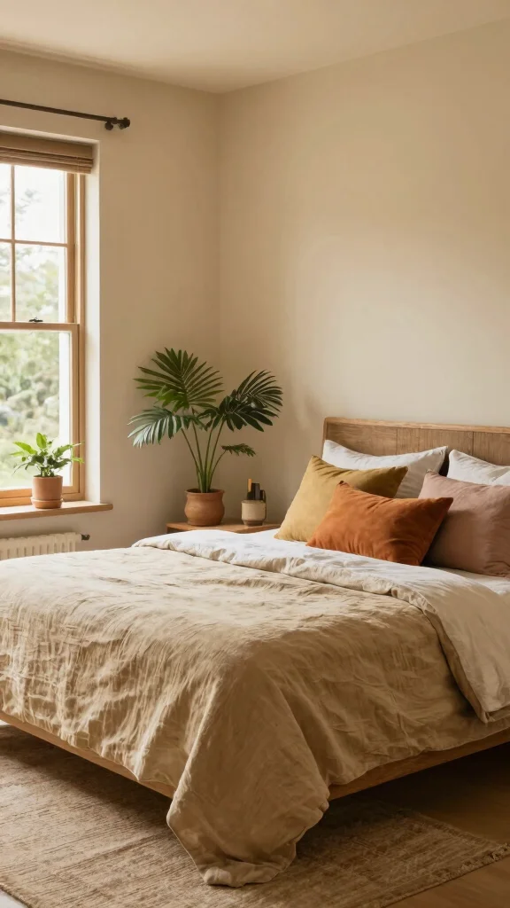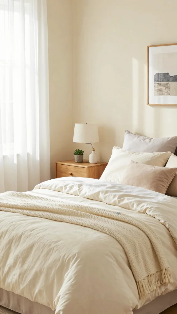 Soft beige is a classic choice that creates a calming, cozy atmosphere in your bedroom. This neutral tone serves as a warm foundation, allowing you to mix and match vibrant colors or earthy tones effortlessly. It fosters a welcoming environment perfect for relaxation and restful nights.