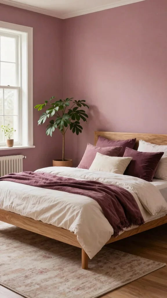 Dusty rose brings a modern twist to classic pink, infusing your bedroom with warmth and comfort. This muted hue creates a cozy backdrop that exudes tranquility without overwhelming your senses. It pairs beautifully with warm grays and plum accents, crafting a sophisticated yet inviting atmosphere.