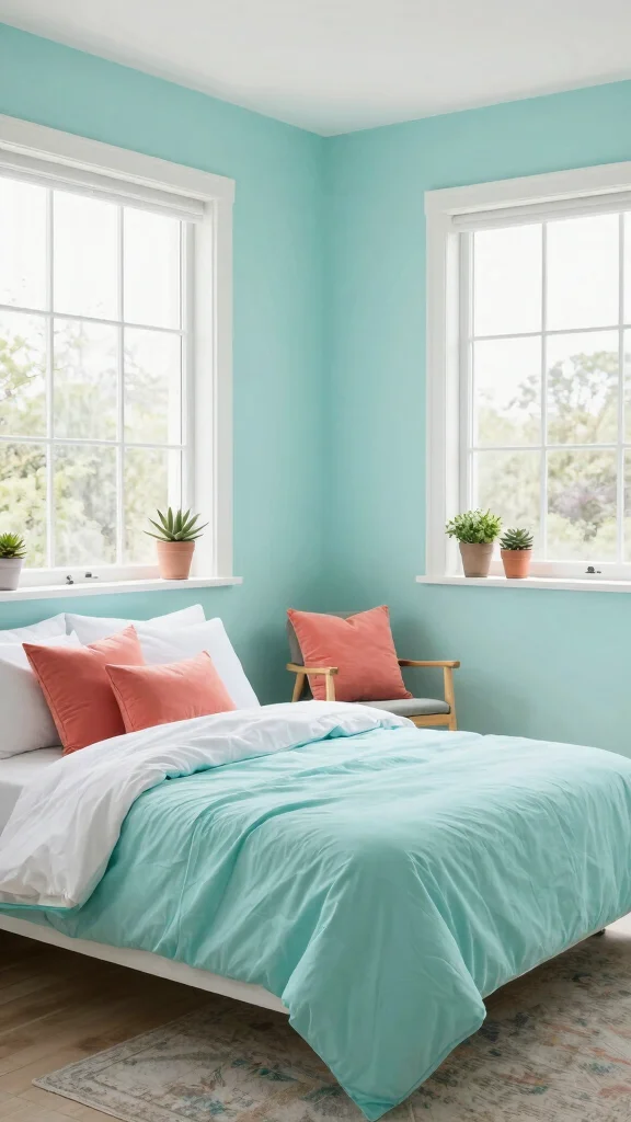 Light aqua offers a refreshing touch that feels both soft and inviting, reminiscent of clear skies and tranquil waters. This calming hue is perfect for creating a serene atmosphere in your bedroom. It pairs beautifully with crisp whites, coral accents, and sandy beiges, allowing for versatility across various decor styles.