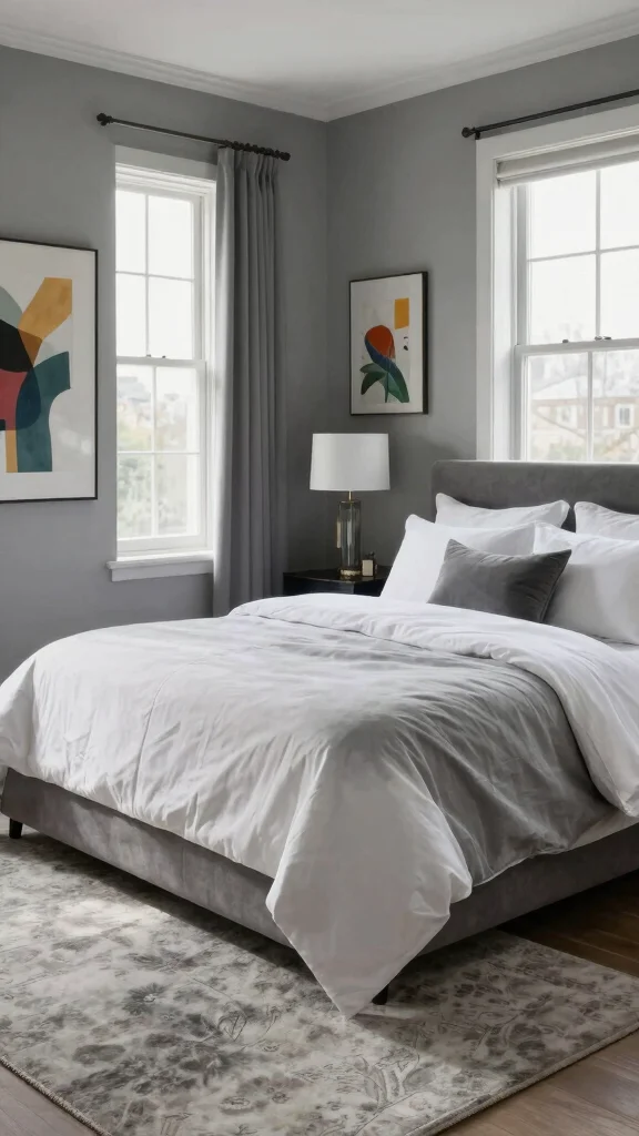 Use bold accent colors sparingly against soft tones to maintain a calm vibe in your bedroom.