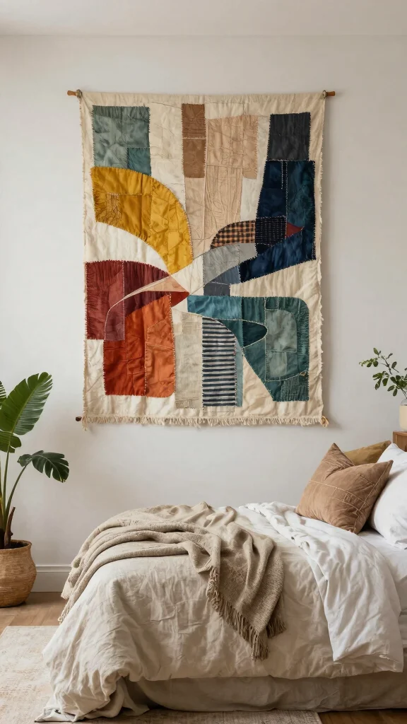 This concept promotes sustainability and customization, providing an engaging focal point for your bedroom. Layering different fabric textures enhances the overall design, making it both captivating and inviting.