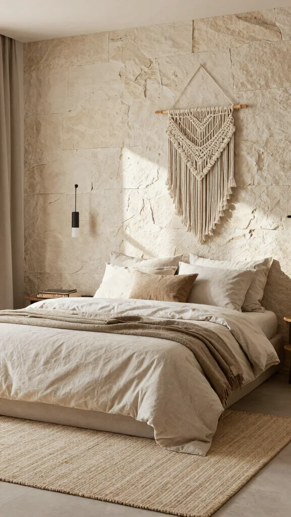 These textured walls can beautifully complement simpler decor, allowing the natural elements to stand out without being overwhelming. The tactile nature of these materials also fosters a tranquil environment perfect for relaxation.