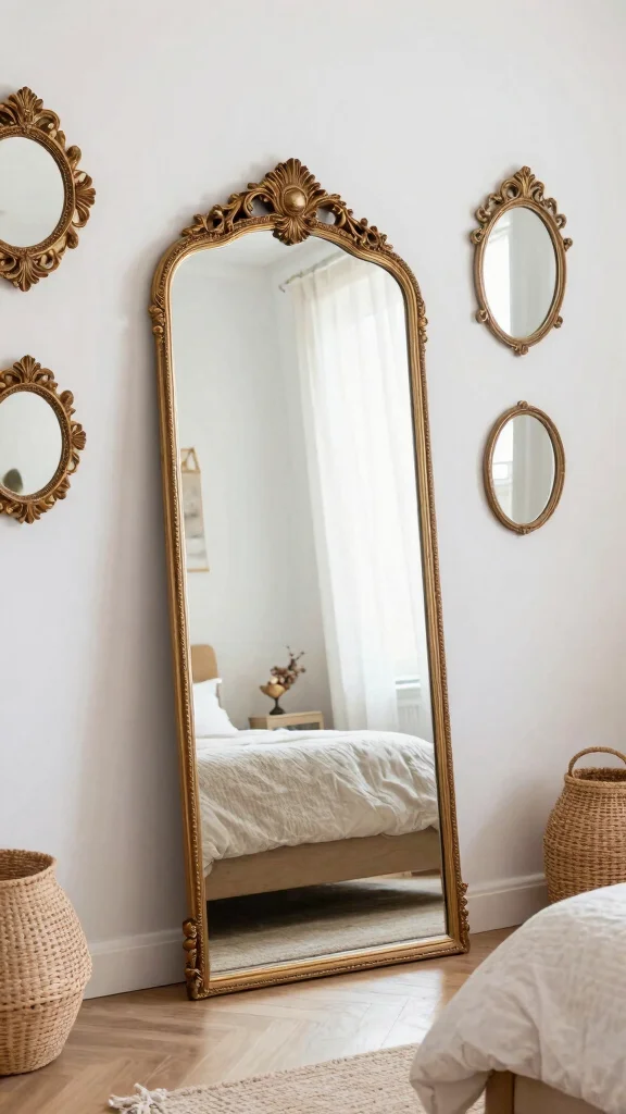 Incorporate oversized mirrors to open up your room and reflect light beautifully. Choose decorative frames that are ornate, rustic, or quirky to enhance the character of your space. Hanging mirrors at various heights and angles adds depth and visual interest.