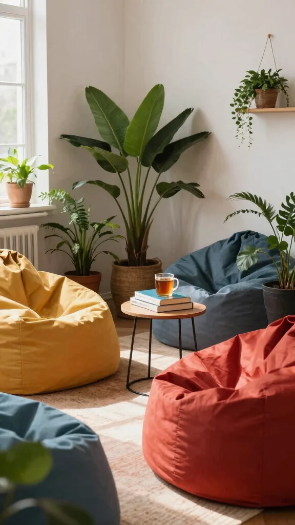 Select colorful or patterned bean bags that complement your overall decor. Consider adding a small side table for snacks or books, enhancing the coziness of the space. Surround the area with plants or warm lighting to elevate the inviting atmosphere.