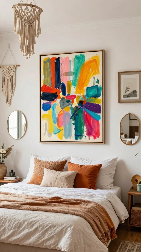 For impactful implementation, hang large canvas art above the bed or dresser to create visual interest. A gallery wall made of framed photos, mirrors, and various art pieces can add depth and character to your space. Consider incorporating three-dimensional art like macramé for added texture and intrigue.