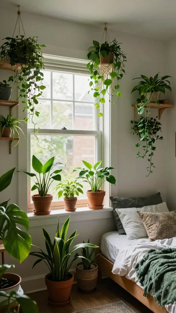 For practical implementation, place potted plants on nightstands or shelves to infuse freshness into the room. Consider hanging trailing plants in macramé hangers to draw the eye upward and create visual interest. Grouping different sizes of plants together can form a mini indoor garden that serves as a beautiful focal point.