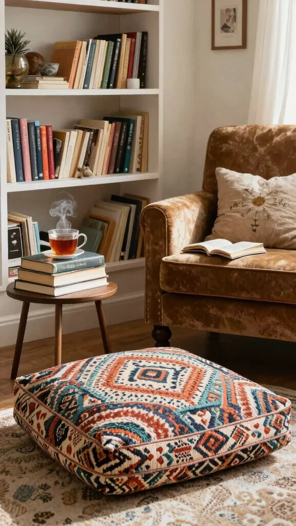 – Use floor cushions or poufs for a cozy seating option
