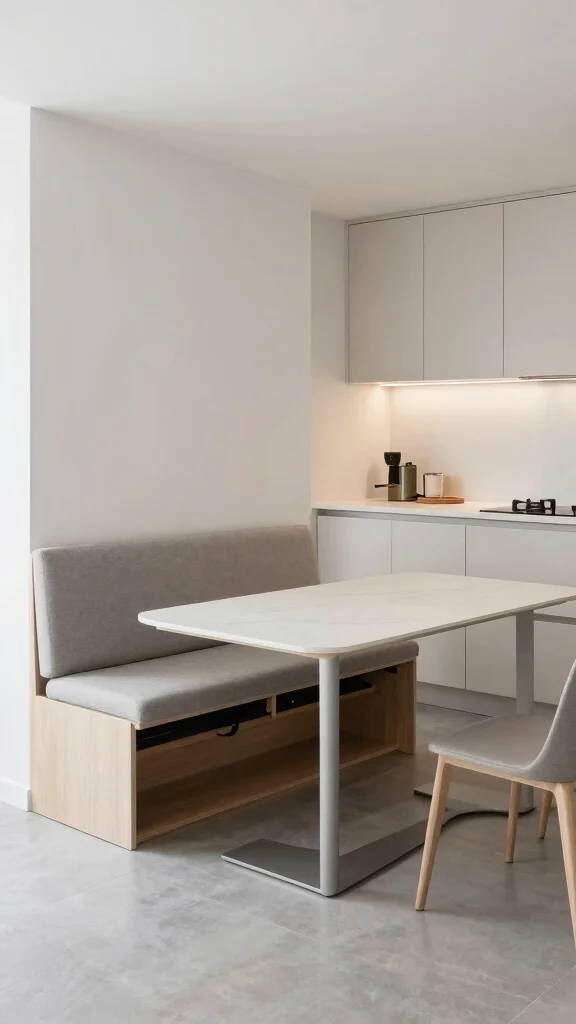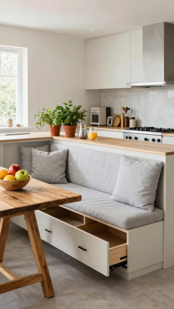 A multi-functional banquette not only serves as a stylish statement piece but also enhances your kitchen’s practicality, perfect for urban living.