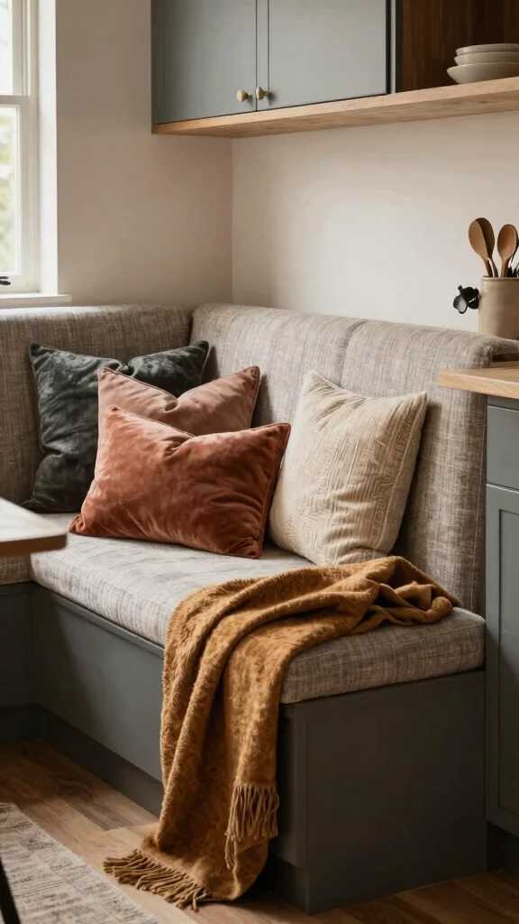 Incorporating texture into your banquette enhances both the visual appeal and comfort of your kitchen nook. Layering fabrics like velvet, linen, and cotton creates a cozy atmosphere that invites you to relax. Mixing textures adds depth and interest, resulting in a stylish and personalized space.