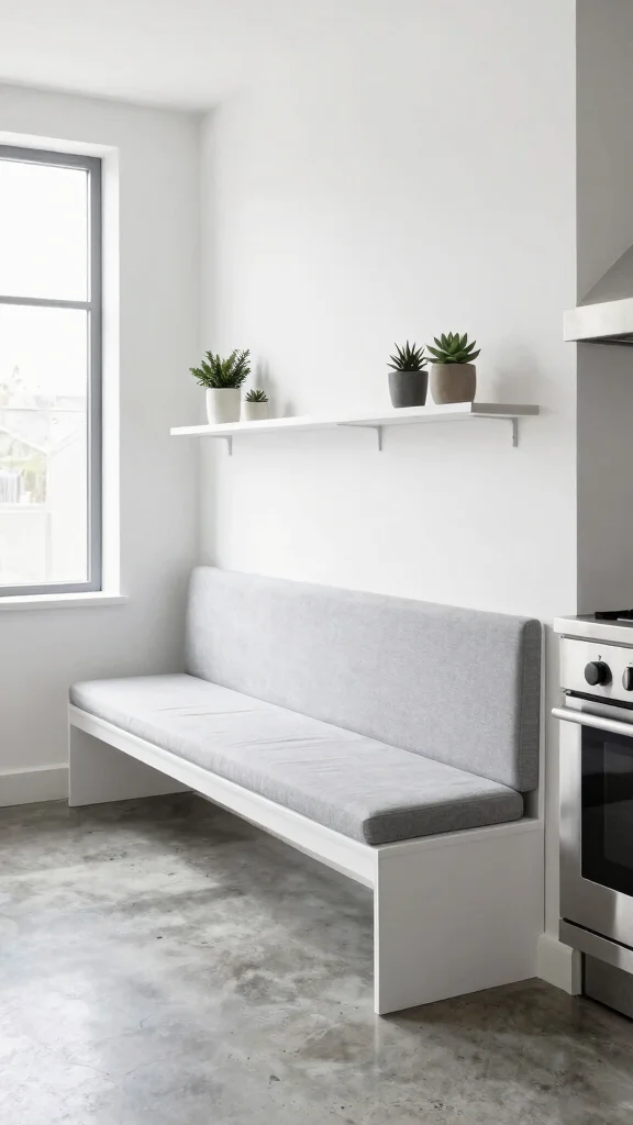 In a modern urban kitchen, a sleek banquette that embodies minimalism combines style with functionality. Think clean lines and muted colors that create an airy atmosphere. This design seamlessly integrates into your kitchen, enhancing the sense of space.