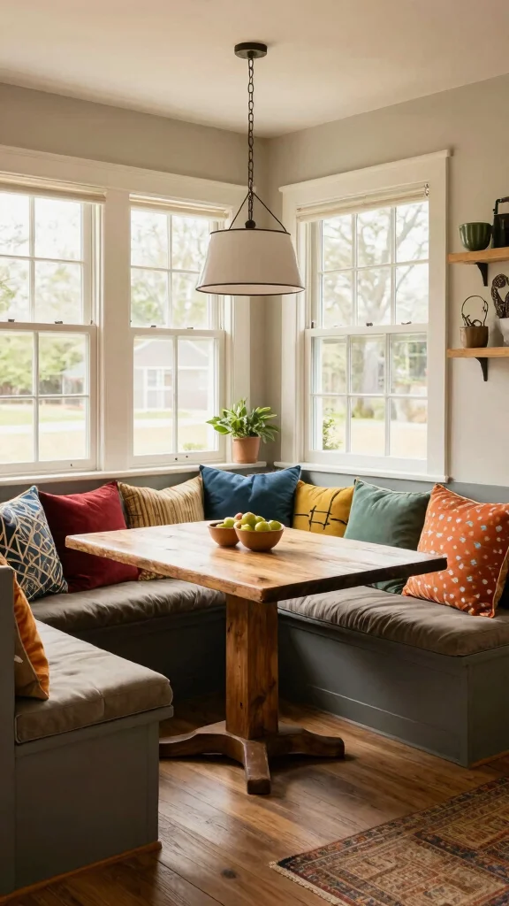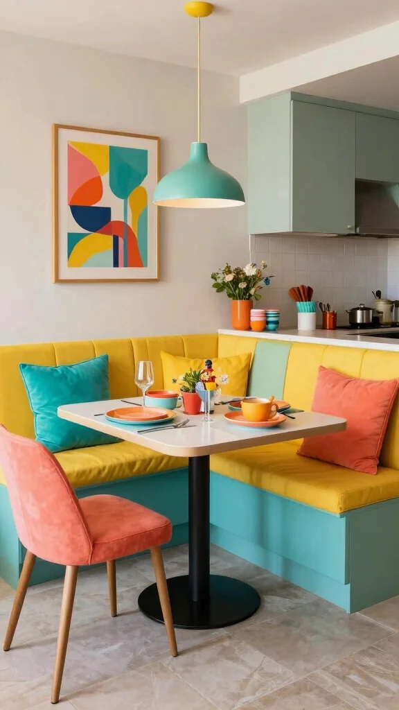 Embracing bold colors in your banquette creates a cheerful nook that inspires joy and creativity at mealtime.