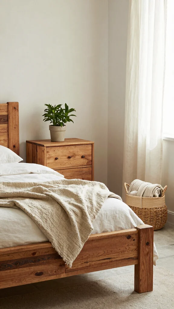 Layer textures with organic textiles—linen sheets, wool throws, and cotton rug—to build cozy bedroom aesthetics without clutter.