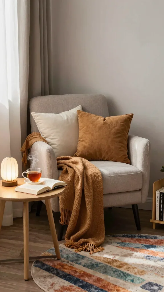 Designate a corner with a plush chair, a small side table, and a well-placed lamp to create a serene sanctuary for reading or enjoying your morning coffee. Adding plenty of pillows and blankets for extra comfort will make this space even more inviting.