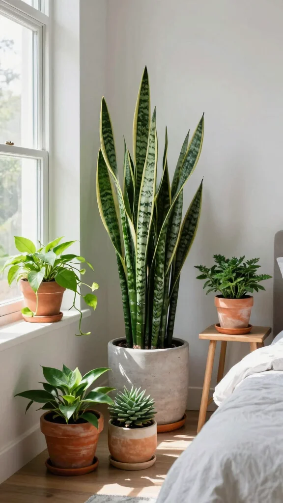 – Consider snake plants, pothos, or peace lilies for their air-purifying properties.
