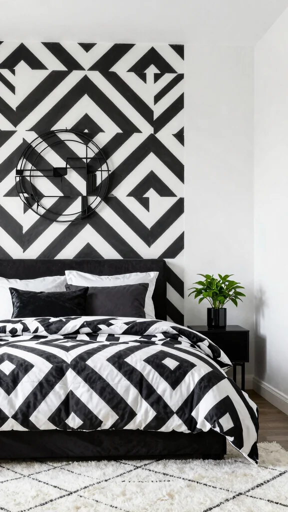 Embracing striking geometric patterns in black and white can instantly uplift your bedroom’s ambiance. These bold designs create a stunning visual rhythm that draws the eye and adds a layer of sophistication. Imagine a feature wall adorned with graphic wallpaper or stylish bedding that showcases dynamic shapes, harmonizing modernity and timeless appeal beautifully. The interplay between these patterns and solid furniture pieces fosters a balanced, inviting environment.