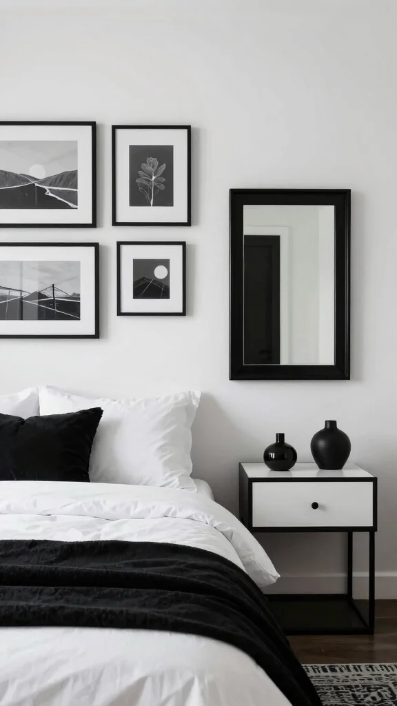 Investing in timeless black and white artwork provides the perfect finishing touch for your bedroom. Classic pieces or modern interpretations in monochrome can beautifully unify the space, acting as conversation starters that add sophistication. Large canvas prints or a mix of smaller framed works can align with your taste while enhancing the overall aesthetic.