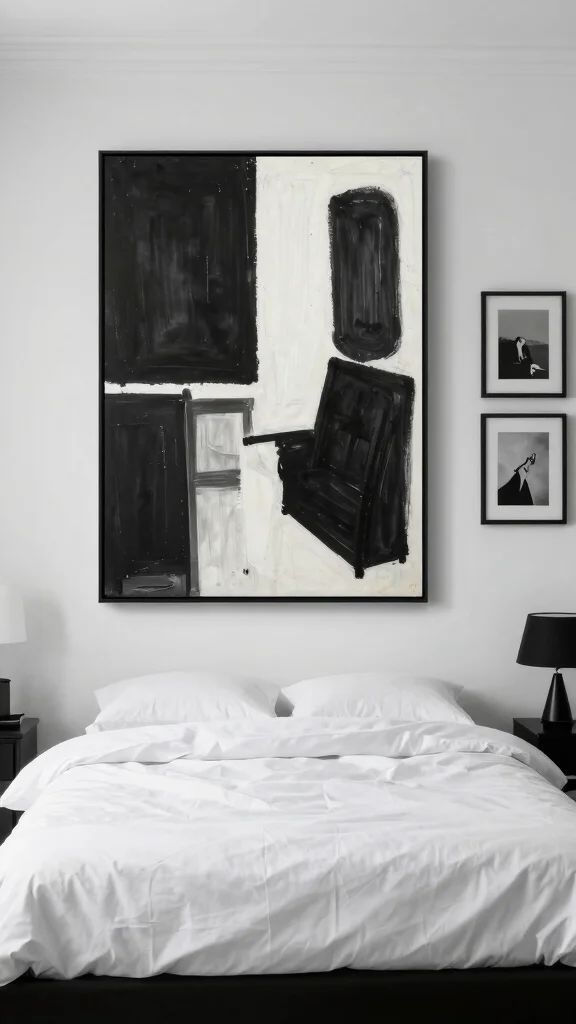 Timeless black and white artwork elevates your decor, creating a sophisticated ambiance that enriches your bedroom’s overall design.