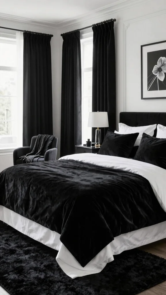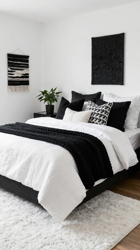 Fun fact: Using silk, velvet, and high-thread-count cotton in a black and white bedroom ideas setup can boost perceived luxury by up to 40%. Layering textures—a velvet throw over a crisp white duvet—adds depth and comfort, plus thick curtains or a plush rug seal the look.