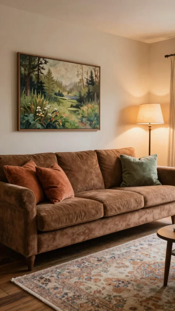 – Earthy Color Schemes: Use colors like greens, creams, and rustic oranges to complement your brown sofa and create a cozy atmosphere.