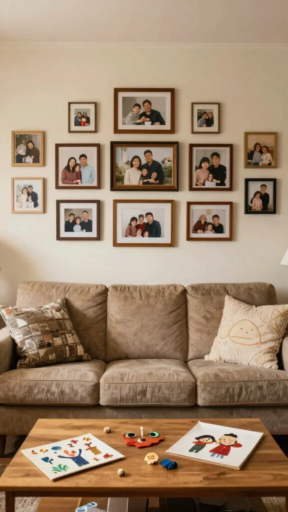 Incorporating family memories into your living room design adds warmth and character. Display photographs in eco-friendly frames, create a family gallery wall, or showcase unique objects that tell your family’s story. This not only enhances the coziness of your space but also fosters a deeper connection with your environment.