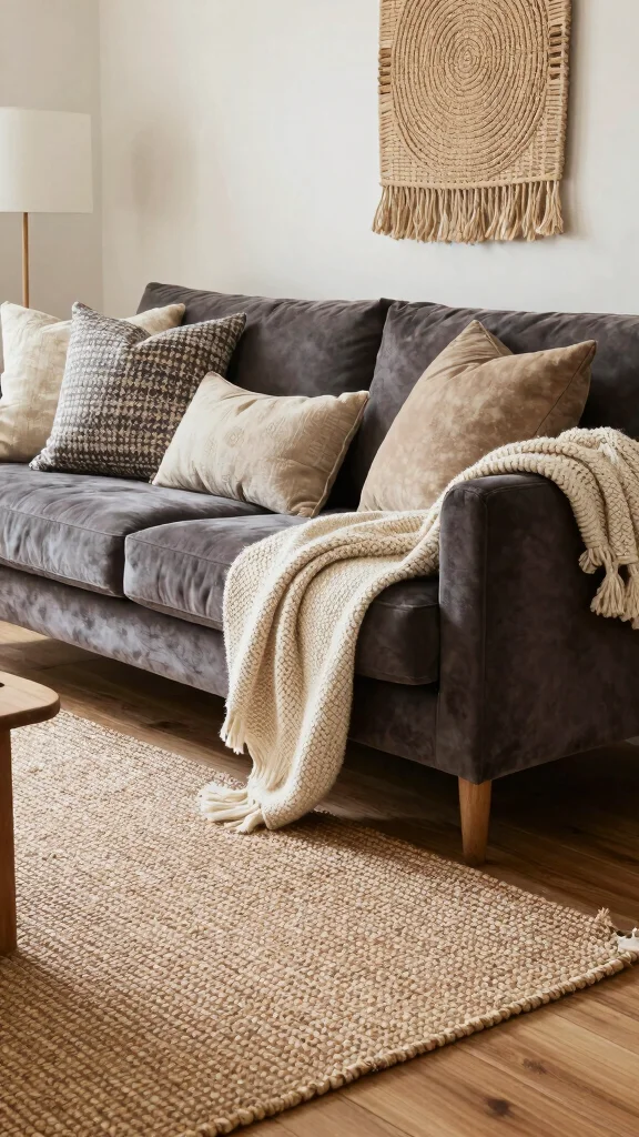 Start by choosing textiles that harmonize yet contrast; a chunky knit throw draped over a velvet sofa is a perfect example of comfort combined with style. Mixing textures not only enhances visual interest but also invites touch, making your living room feel more welcoming.