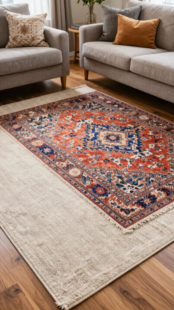 Layered rugs will add depth and comfort to your living room, creating a cozy space perfect for relaxing and entertaining.
