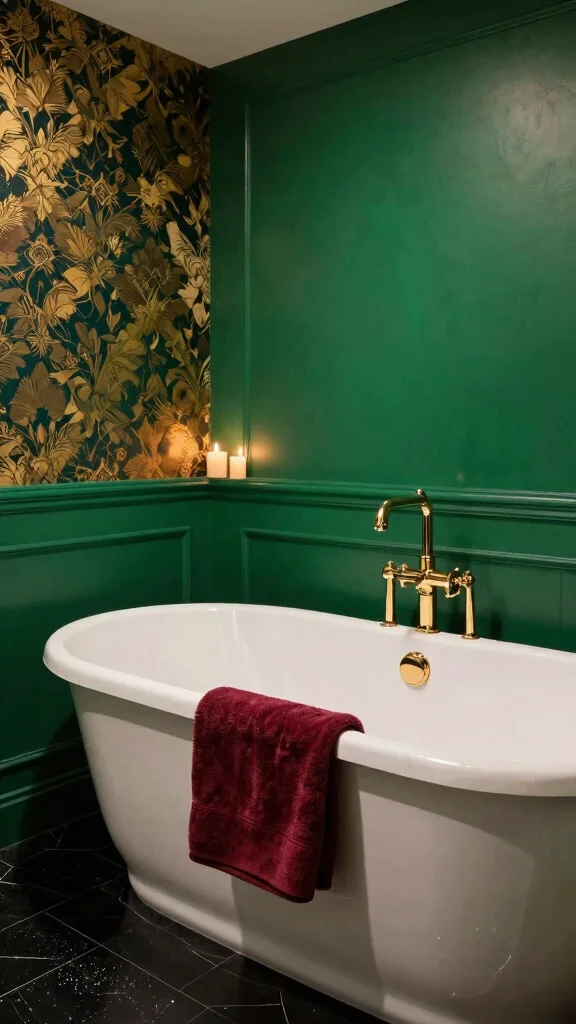 Rich jewel tones like emerald green, sapphire blue, and deep burgundy transform your bathroom into a luxurious oasis. These colors evoke feelings of warmth and sophistication, creating a stunning retreat in your home. Imagine painting your walls in a deep green and adding gold accents through mirrors or fixtures for a touch of elegance. Richly patterned wallpaper can enhance this look, infusing the space with personality and depth.