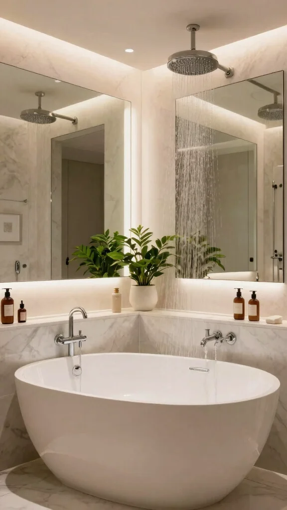 Bring spa-like serenity into your bathroom by integrating luxurious features that evoke relaxation. Think about installing a rainfall showerhead or a freestanding tub designed for ultimate comfort. Massaging jets and integrated sound systems can elevate the experience, providing a perfect escape after a long day. Large mirrors can create the illusion of space and light, making your bathroom feel expansive and inviting.