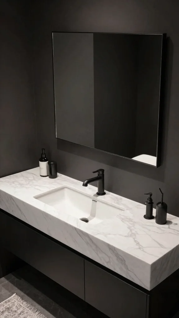 Consider incorporating a freestanding black sink or a black-framed mirror as a focal point. These pieces not only draw the eye but also add a touch of luxe to your bathroom without overwhelming it.