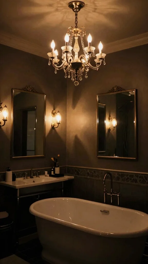 Lighting plays a crucial role in setting the mood of your dark bathroom, and choosing the right fixtures is essential. Opt for statement lighting like a modern chandelier or oversized pendant lights to create visual intrigue and drama. Sconces with dimmers can provide soft illumination exactly where you need it, enhancing the moody vibe. Selecting bulbs that emit warm light can further enrich the atmosphere without overpowering the space.