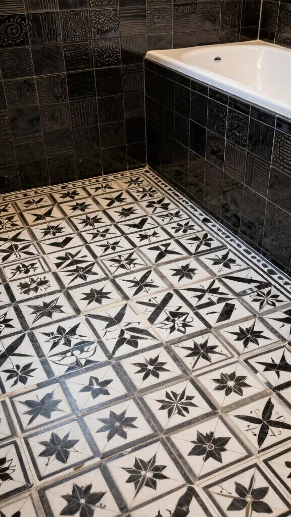 Elevate your bathroom’s design with intricate tile patterns that embrace dark themes. Black and white geometric patterns can offer a classic appeal, while bold mosaics inject a modern twist. Tiles can define spaces and create visual interest, particularly in larger bathrooms. Dark tiles add depth and sophistication, especially when paired with lighter features for balance.