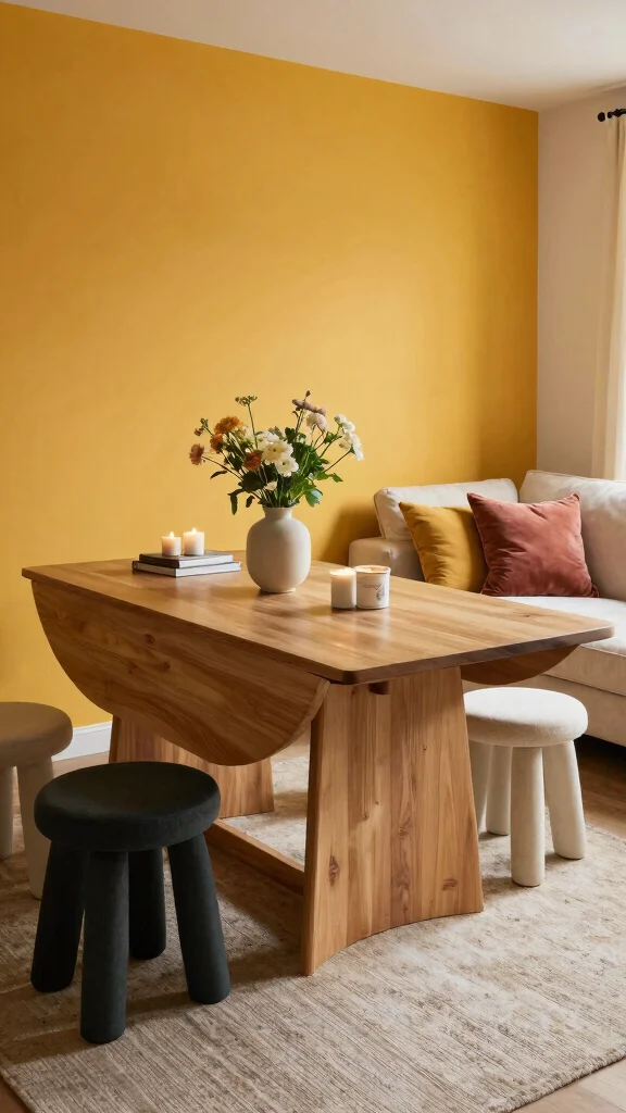 A drop-leaf table is an ideal solution for small living spaces, offering flexibility and style. This design allows you to easily adjust the table’s size, making room for movement when needed. When it’s time to gather for a meal, simply lift the leaves for a spacious dining area that can accommodate family and friends comfortably.