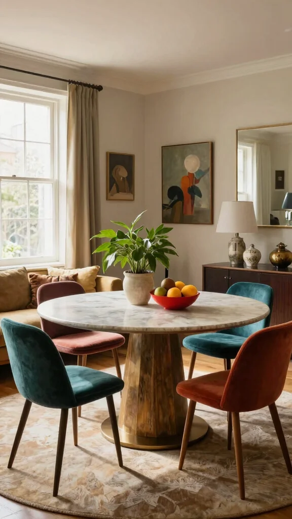 Mixing different sizes of furniture and decor can add a dynamic aspect to your dining area. Experimenting with scale helps create visual interest while balancing a smaller space.