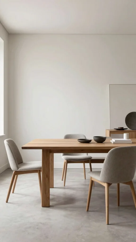A minimalist dining setup emphasizes clean lines and simplicity, bringing a touch of sophistication to your living room. Opt for tables made from natural materials, such as wood or metal, that seamlessly blend into your decor. This approach creates an elegant backdrop for your dining area.