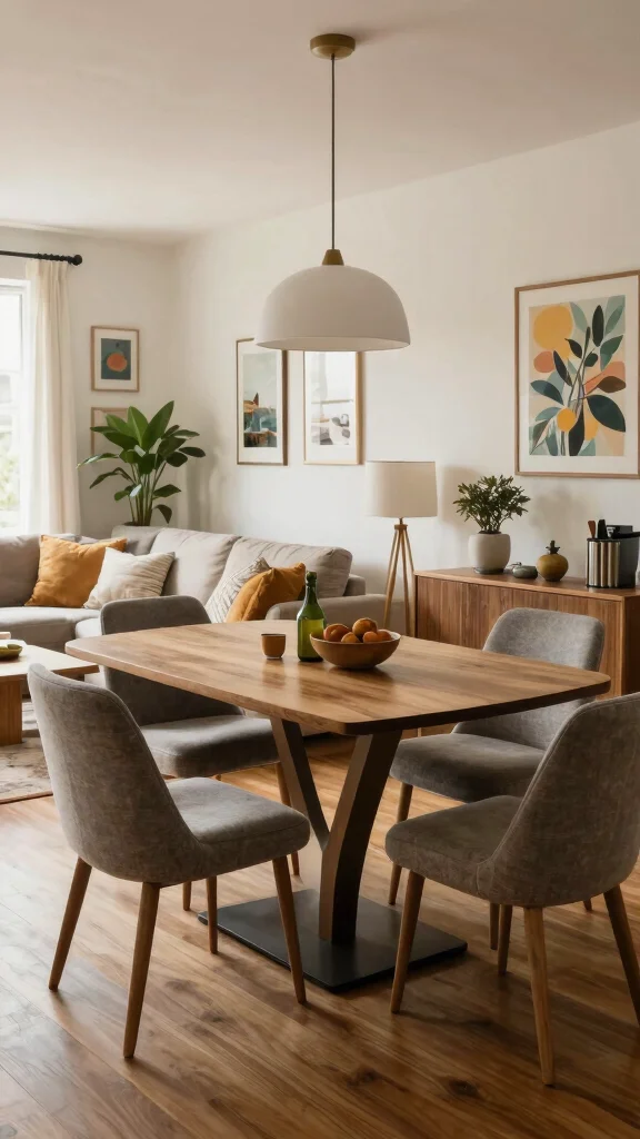 When designing your dining setup, consider multi-functional furniture pieces that serve dual purposes. This approach maximizes your space while keeping your design stylish. For example, a coffee table that lifts to become a dining table adds versatility without crowding your living area.