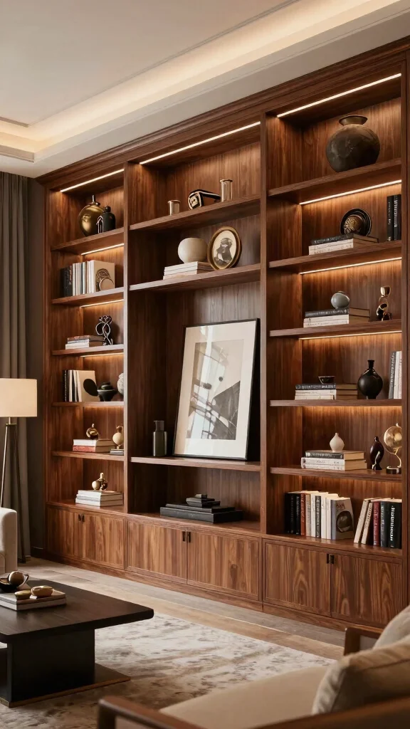 – Integrate lighting within the built-ins to highlight decor and create visual interest.