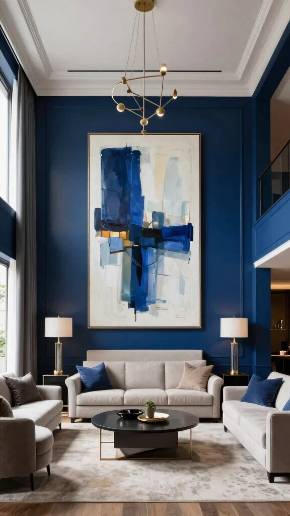 A high ceiling living room is the perfect canvas for bold, dramatic colors. Don’t hesitate to use vibrant hues or striking accent walls; they can create a stunning visual impact that draws the eye and enhances the room’s character. Whether you choose deep navy, rich emerald, or a warm burgundy, these colors can infuse the space with coziness and vibrancy.