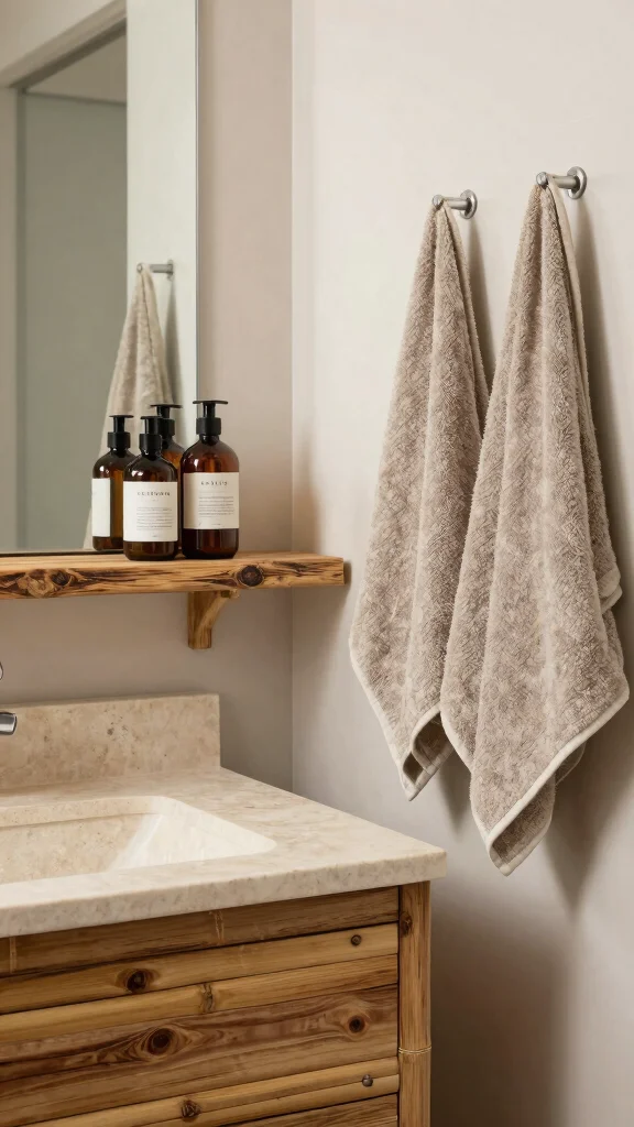 By focusing on earthy textures, you can create a bathroom that feels like a natural sanctuary, offering both style and comfort.