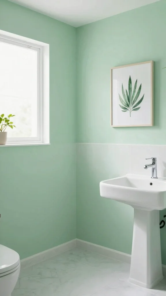 When choosing paint, consider moisture-resistant options to prevent mold and maintain a fresh look. An accent wall in a rich green can add depth without overwhelming the space. Pairing these colors with natural light will amplify their calming effect, making your bathroom feel larger and more inviting.