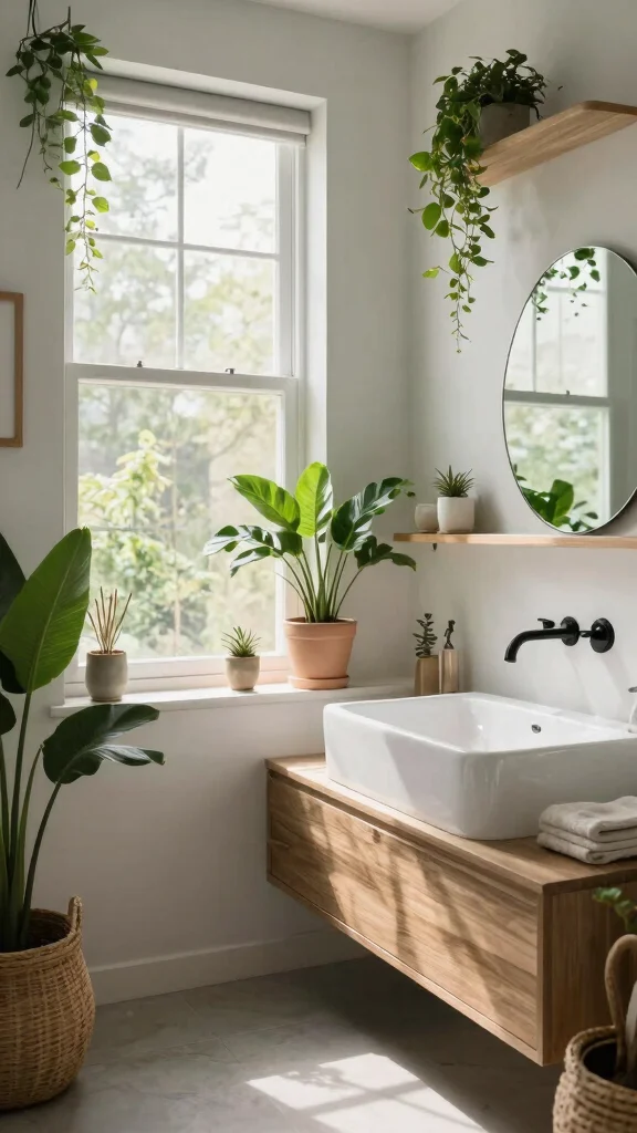 Indoor plants bring life and vibrancy to your bathroom, creating an atmosphere that feels fresh and rejuvenating. The lush foliage not only purifies the air but also enhances visual appeal, making your space feel more inviting. Consider plants like pothos, ferns, and snake plants, which thrive in humid environments and require minimal care. Hanging planters can add dimension and draw the eye upward, making the room feel larger and more open.