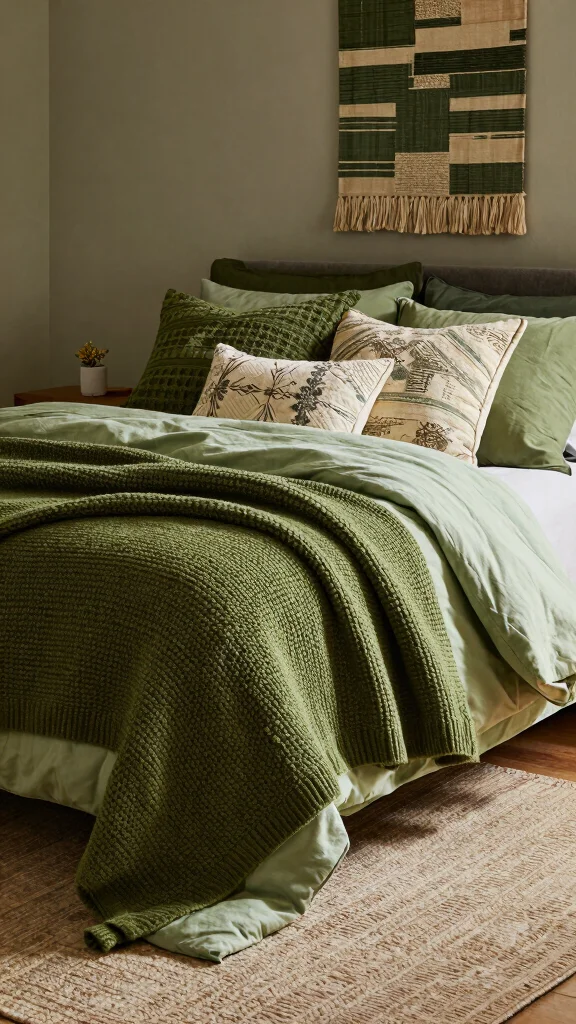 Playing with textures can greatly enhance the ambiance of your green bedroom. Mixing fabrics such as cotton, linen, and wool creates a cozy and inviting atmosphere, perfect for relaxation. Adding a soft green throw blanket or textured cushions can provide comfort while elevating the room’s visual appeal.