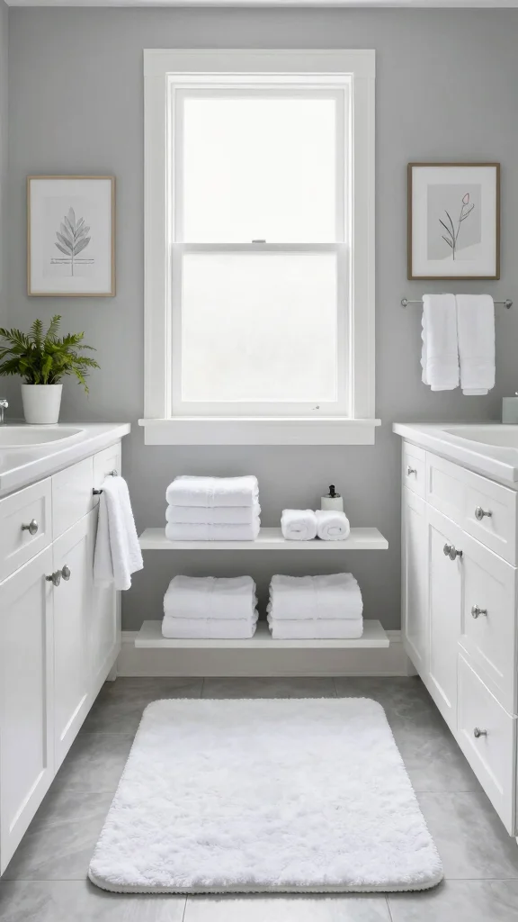 A well-placed piece of wall art can elevate this aesthetic. Think about framed prints in white frames that harmonize with the grey tones. Accessories like fluffy white towels and a sleek white bath mat seamlessly complete the look, fostering a peaceful environment that feels both spacious and inviting.