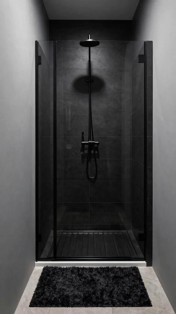 To achieve this aesthetic, use black fixtures against grey walls for a bold impact. Incorporating black tiles or accents can deepen the look while keeping it visually appealing.