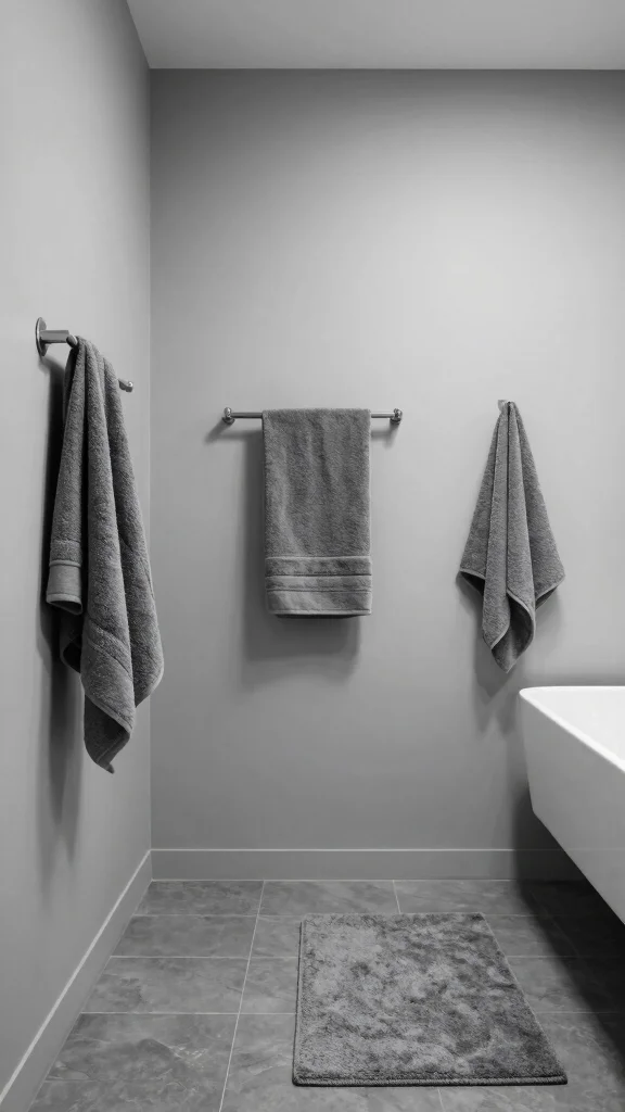 – Select soft grey towels and a calming color palette to maintain tranquility.