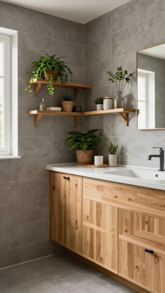 Blending grey with natural wood elements introduces warmth and texture into your bathroom, softening the often sterile feel of modern designs. This contrast fosters a spa-like atmosphere that is both welcoming and grounded.