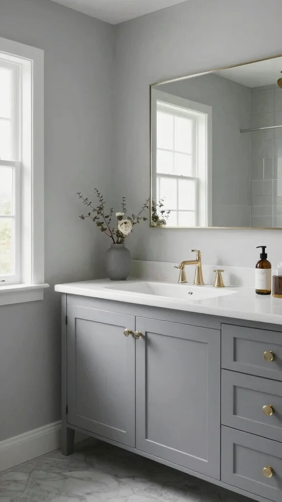Soft grey walls paired with crisp white accents create a classic yet contemporary bathroom aesthetic. This combination promotes a sense of spaciousness and tranquility, making it perfect for smaller areas. The subtle contrast between the two colors enhances the room’s elegance, providing a soothing backdrop for your daily routine.