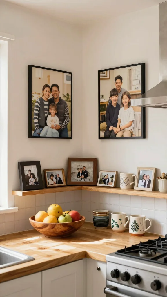 Personal touches turn a kitchen into a home. In interior design kitchen projects, custom artwork and a family photo gallery bring warmth, nostalgia, and eco-friendly charm—and they’re doable, affordable, and endlessly shareable.
