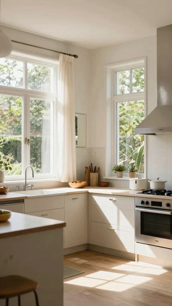 Focusing on natural light creates a vibrant, airy kitchen that invites creativity and connection.