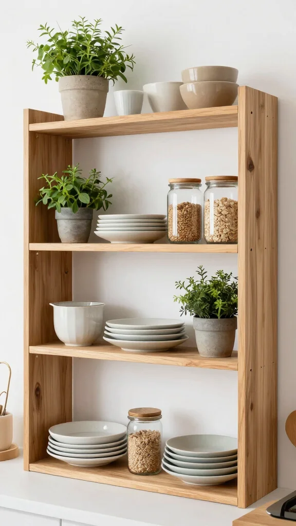 Open shelving is a beautiful way to showcase your favorite dishware while adding character to your kitchen. This design choice not only enhances accessibility but also allows you to display eco-friendly items, merging functionality with style.